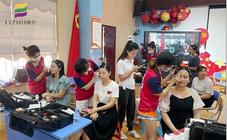 6月29日,麗竹學(xué)校組織化妝班學(xué)員為首府南寧紀(jì)檢監(jiān)察系統(tǒng)慶祝中國(guó)共產(chǎn)黨成立100周年合唱比賽提供妝造服務(wù)