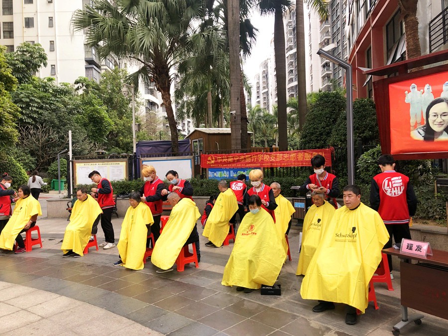 不一會(huì),居民們就陸續(xù)從四面八方而來。學(xué)員們有序帶領(lǐng)居民們坐下后,便開始細(xì)心詢問大家的理發(fā)需求,之后理發(fā)工作便開始了!在學(xué)員們嫻熟的操作下,不會(huì)以一個(gè)清爽利落的發(fā)型便完成了。居民們看著自己的新發(fā)型,紛紛向?qū)W員們豎起了大拇指!