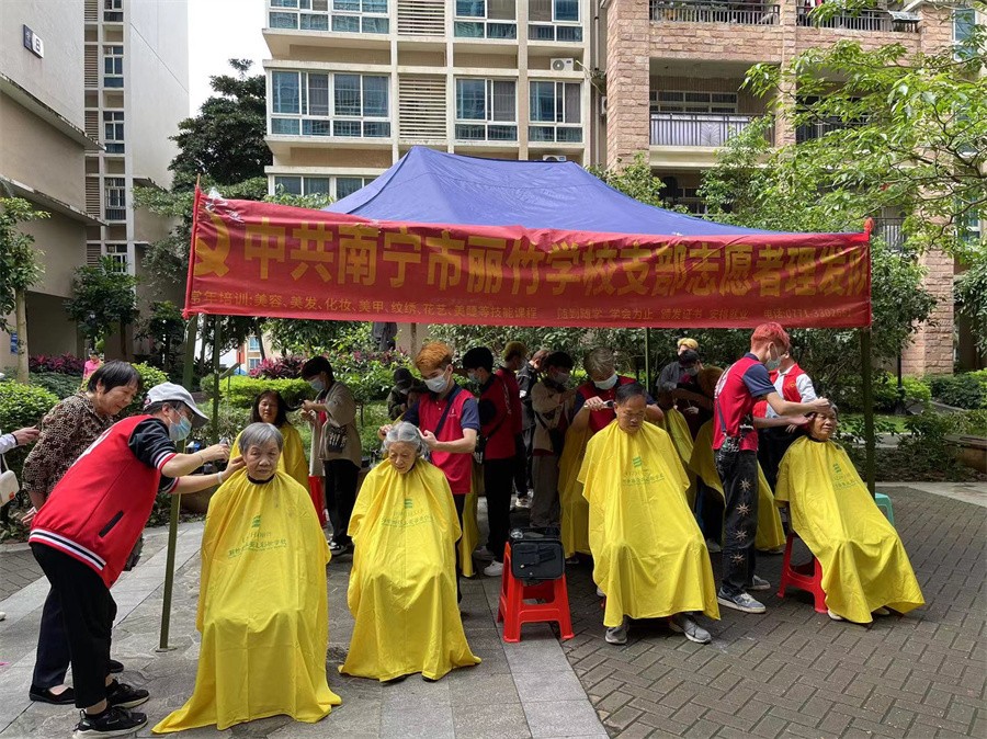廣西美發(fā)公益-2023年5月9日-麗竹美發(fā)學(xué)校志愿者到普羅旺斯小區(qū)進(jìn)行義剪活動