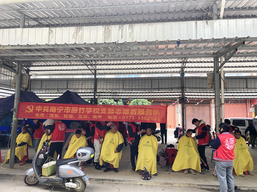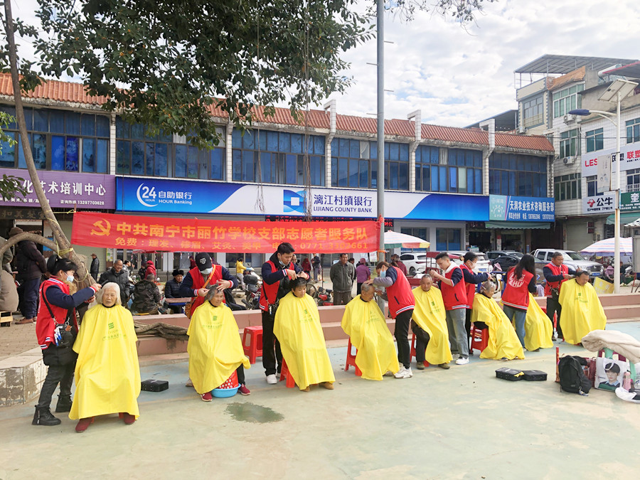 南寧美發(fā)社會實踐報告、南寧美發(fā)教學(xué)外出:霜凍籠罩在上空,呼呼刮來的冷風(fēng),連綿不斷的陰雨讓本就寒冷的氣溫變得更加刺骨難耐。但即便是在這樣的天氣下,南寧美發(fā)職校志愿者服務(wù)隊的同學(xué)們依舊走訪在各大周邊城鎮(zhèn),為群眾們進(jìn)行免費理發(fā)服務(wù)。下面,就請跟著南寧美發(fā)造型培訓(xùn)(麗竹美發(fā)造型培訓(xùn))的鏡頭一起去看看同學(xué)們都去了哪些地方吧!