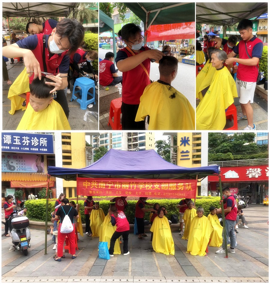 廣西美發(fā)義剪、廣西美發(fā)剪發(fā):隨著氣溫的日益升高,南寧市氣象中心也發(fā)布了高溫預(yù)警。面對滾滾襲來的熱浪,廣西美發(fā)剪發(fā)職業(yè)學(xué)校(麗竹美發(fā)剪發(fā)職業(yè)學(xué)校)的同學(xué)們在老師的帶領(lǐng)下,來到各大小區(qū)進(jìn)行外出教學(xué)實(shí)踐之余,也為居民送去夏日清涼,免費(fèi)為大家進(jìn)行理發(fā)服務(wù)。