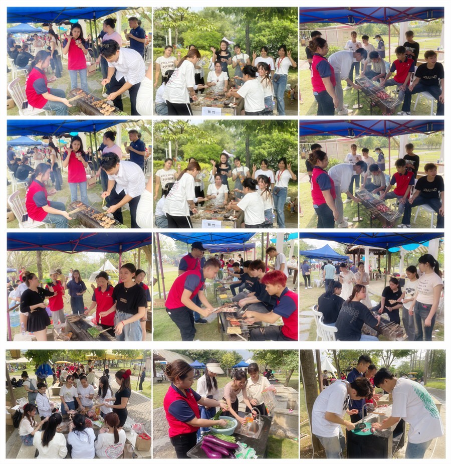 游戲結(jié)束后,終于到了同學(xué)們期待已久的“燒烤盛宴”。大家配合默契,清洗食物,涮調(diào)料的,烤肉的等等,各個(gè)步驟有條不紊地展開(kāi)。隨著縷縷青煙縈繞上空,大家一邊燒烤一邊聊天,到處都飄散著歡聲笑語(yǔ)。